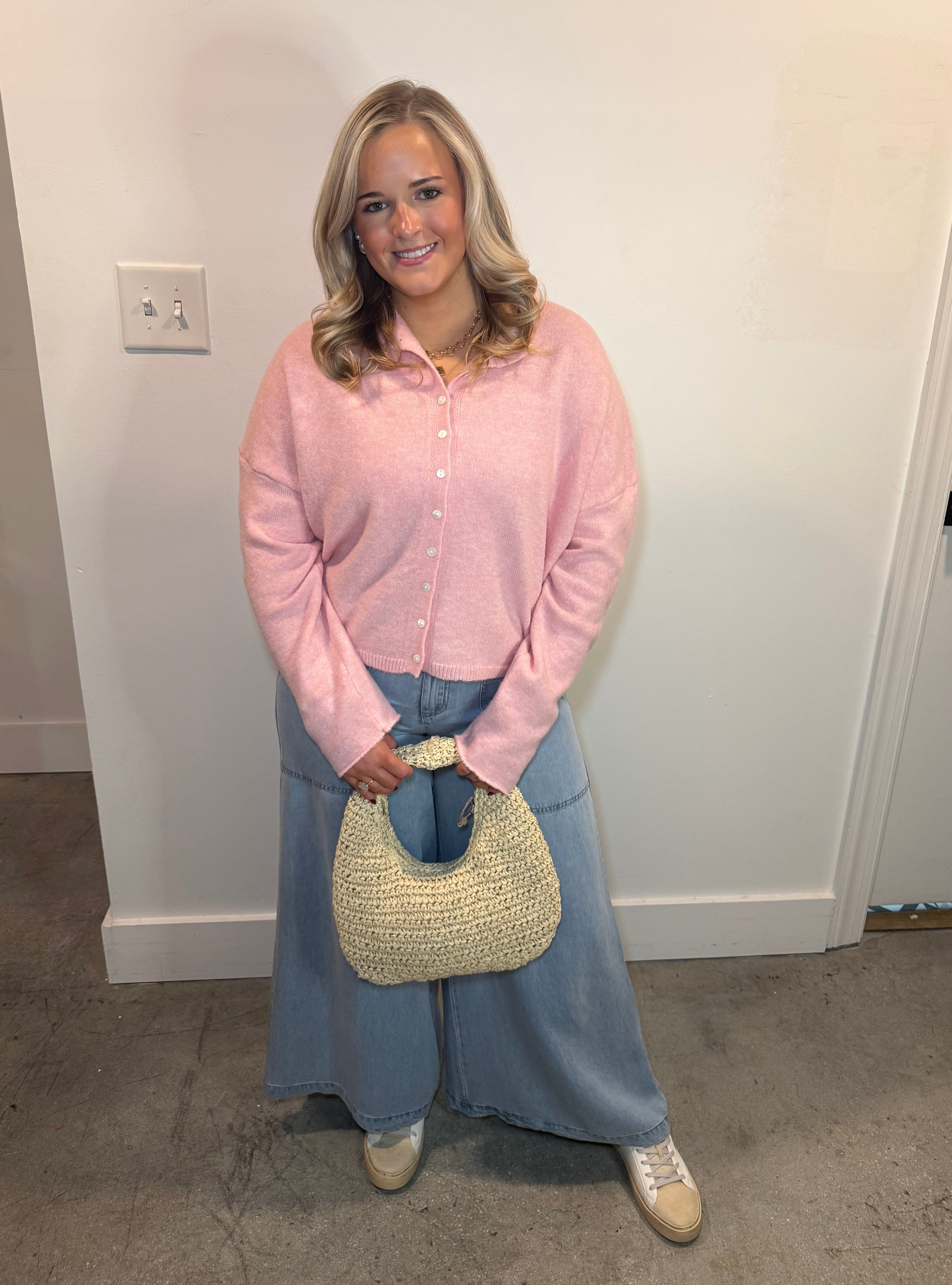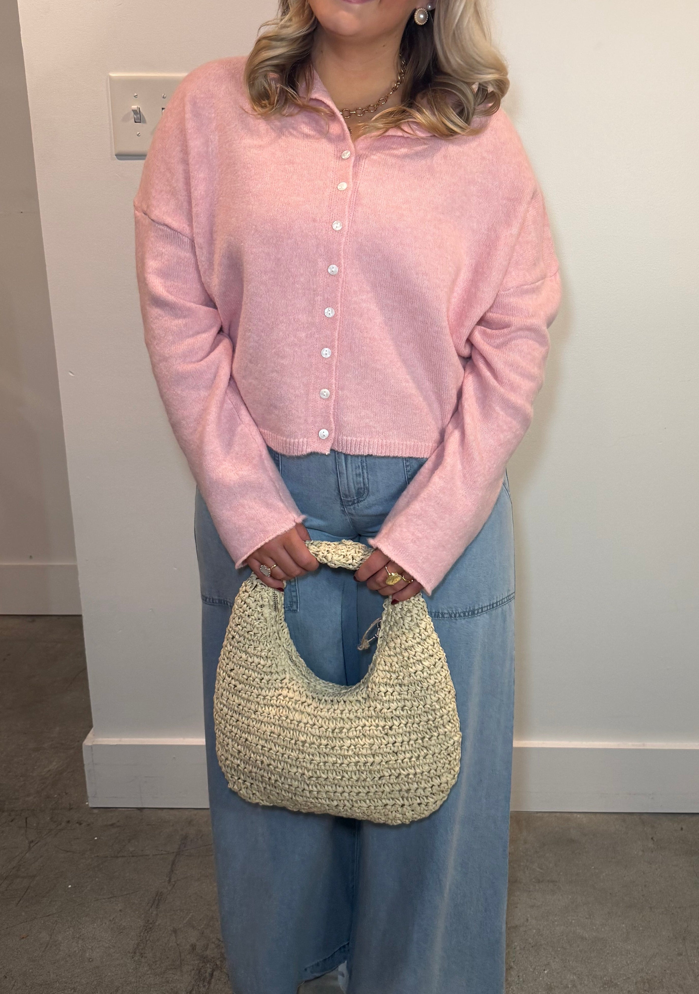 Slip into effortless style with the Briar Breeze Sweater in baby pink. This soft knit cardigan features a relaxed drop shoulder silhouette that feels as good as it looks—perfect for layering over your favorite tee or wearing solo. Button-down design makes it easy to adjust your vibe throughout the day. Whether you're heading to brunch or settling in for a cozy evening, this versatile piece is your new go-to for comfort that doesn't compromise on charm.