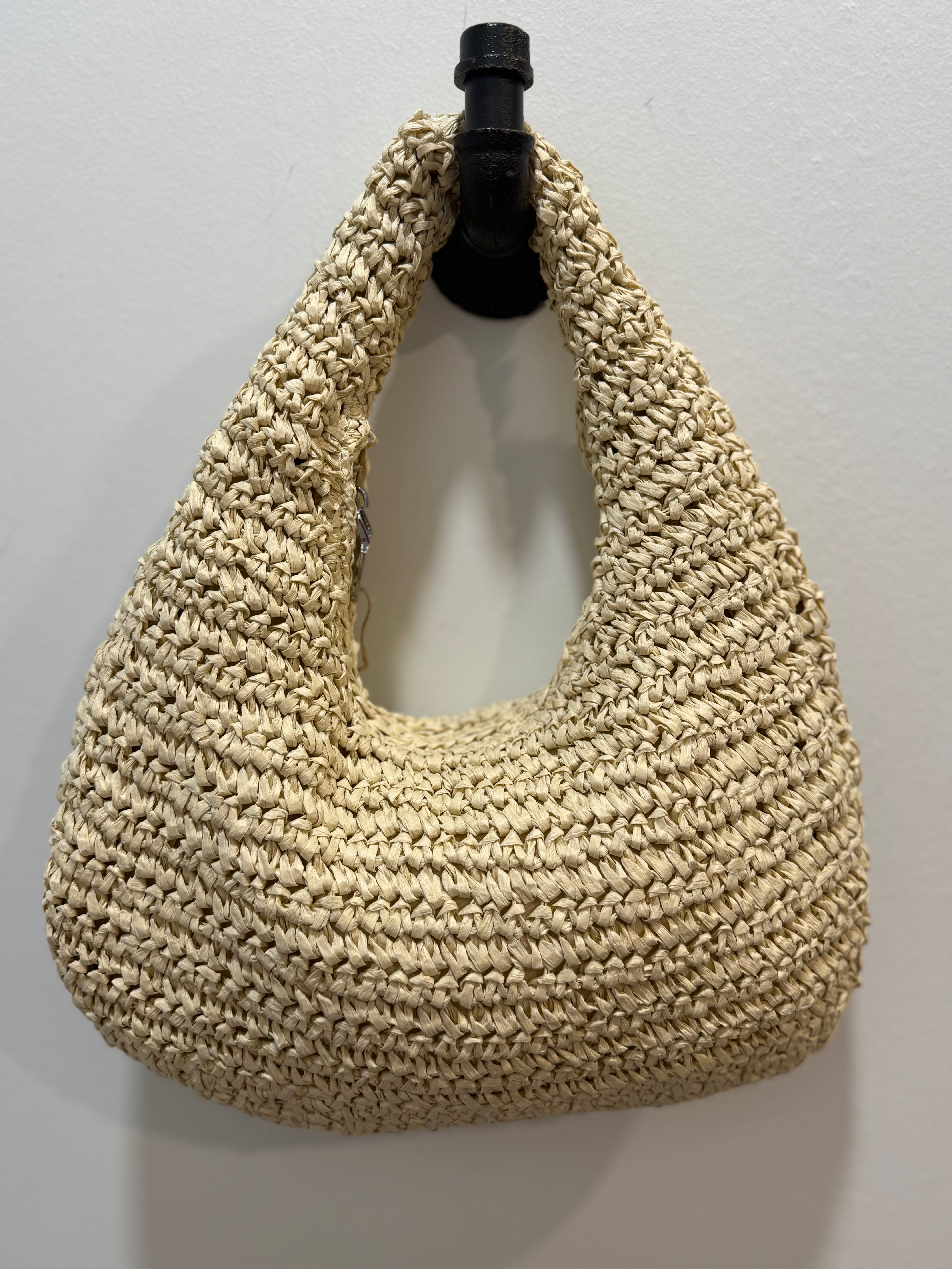 The Reyna Straw Shoulder Bag, crafted from cream-colored straw, offers a lightweight design and ample storage capacity. Its flexible structure ensures comfort during use, making it an ideal accessory for spring and summer outings. This bag combines practicality with seasonal aesthetics, accommodating all your essentials effectively.